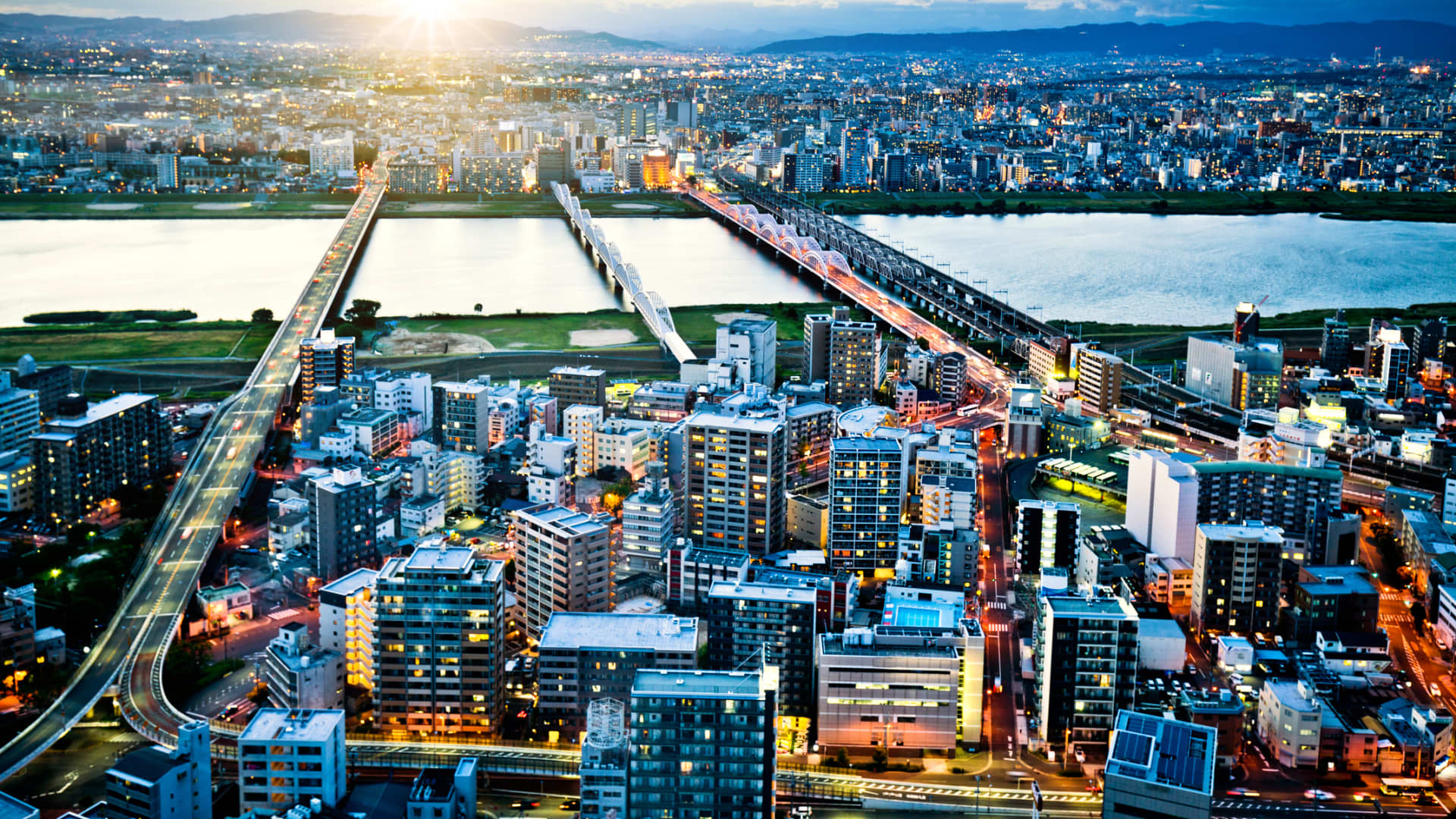 Aerial view of Osaka Skyline