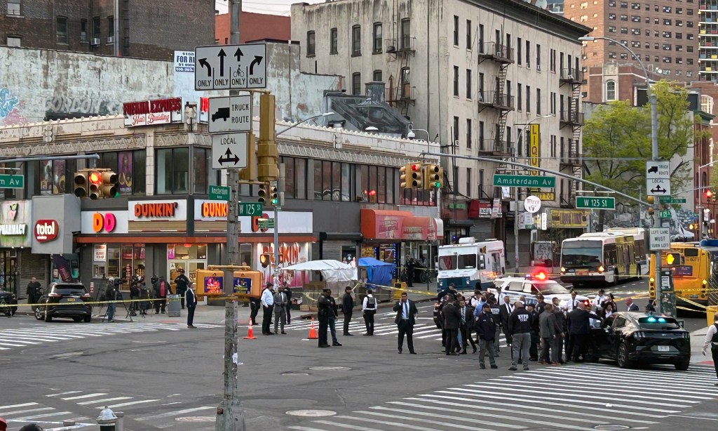 But as the shooter rounded the corner heading north onto Amsterdam Ave., a second gunman entered the intersection from the southwest corner of W. 125th St. and Amsterdam Ave. and shot at the fleeing suspect.