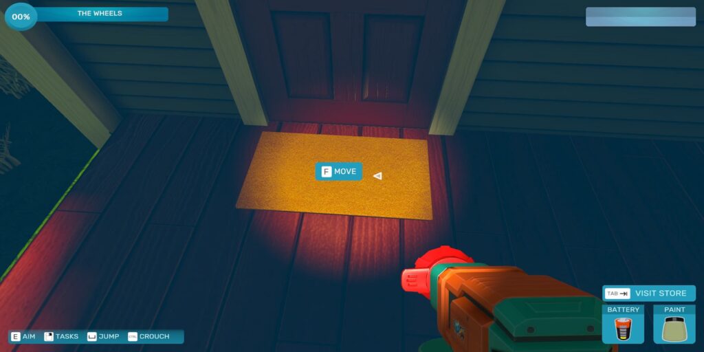 The first secret you can find is in the first job in the game, The Wheels. You can find this secret in Career Mode or Free Paint mode. Starting from the car, look towards the garage behind the car and go down the path to the left. On the left side of the house you’re walking next to will be a porch you can step onto and see a doormat in front of the door. Interact with the doormat to find a letter and also uncover the secret.