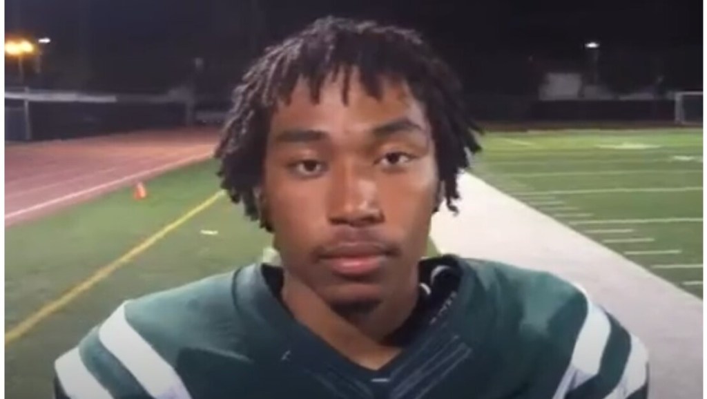 He would soon transfer to Granada Hills, and in a short video interview published by the Los Angeles Daily News on YouTube on Sept 19. 2015, he appeared shy as his interviewer heaped praise on him as a “standout running back” whose huge fourth-quarter touchdown sealed the team’s 35-31 come-from-behind victory.