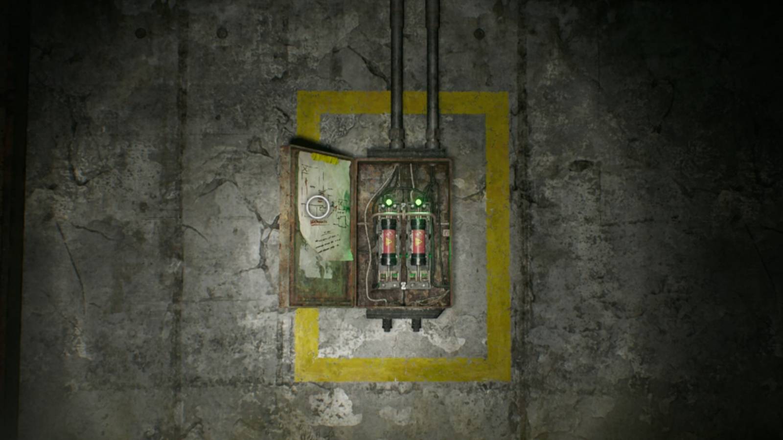 The first Battery can be found in the Underground Parking Garage. To start, look opposite the fuse box where you found the Battery Storage Locations file. You will see a truck with a ladder that you can climb to reach the parking lot.