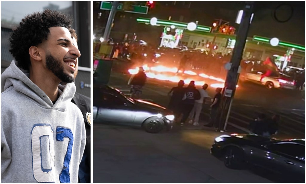 “The defendant’s actions demonstrate a complete disregard to the safety of himself, the numerous individuals he nearly struck by his vehicle and the residents of Queens County (while) whipping his vehicle back and forth through a ring of fire at that intersection next to two gas stations,” prosecutors said.