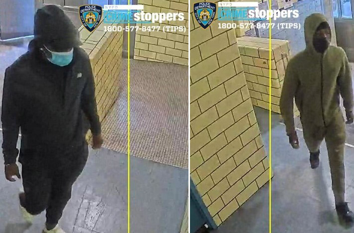 One of the men was wearing a green sweatshirt and sweatpants; the other was wearing a blue sweater, cops said.